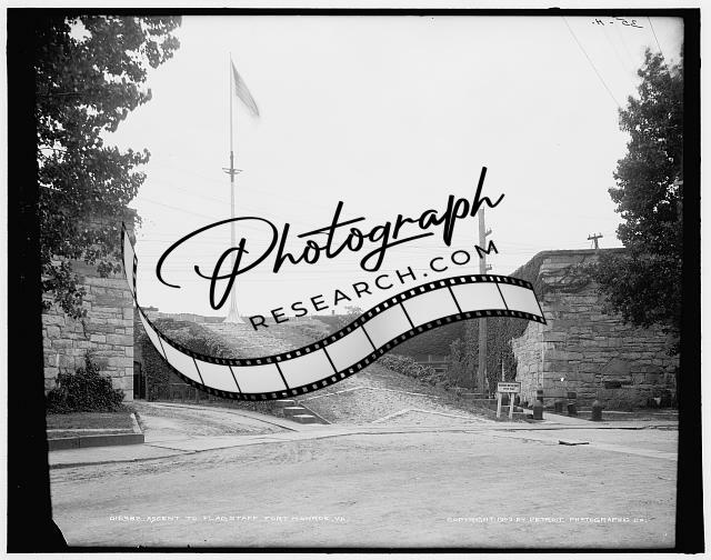Ascent flagstaff,American flags,Fort Monroe,Virginia,Detroit Publishing Co,c1903
