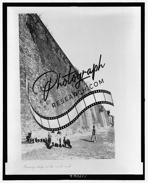 Young Chinese boy with his sheep against a Beijing city wall,China,c1924
