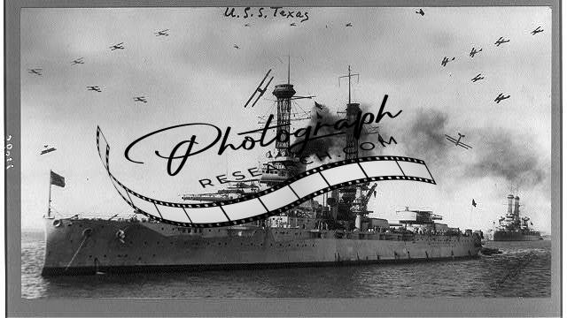 U.S.S. TEXAS,Battleship at sea,Biplanes,c1919,US Flag