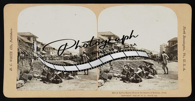 A native barber shop in the streets of Bombay,India