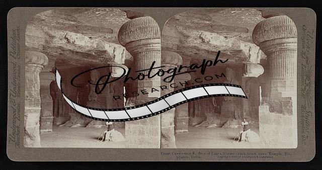 Great cave-into e. door of Linea shrine-rock-hewn cave temple,Elephanta,India