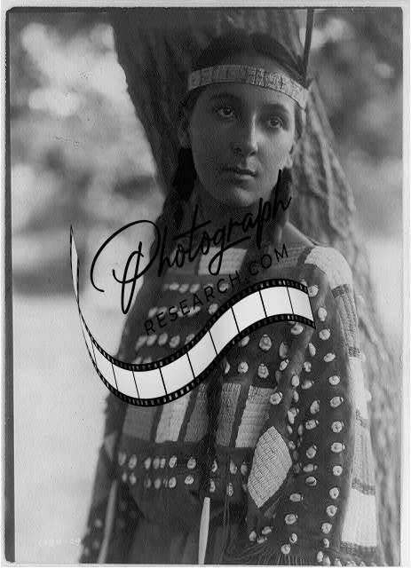 Lucille,Young Native American woman,clothing,headdress,Indians,E Curtis,c1907