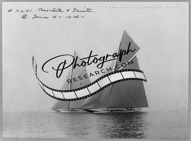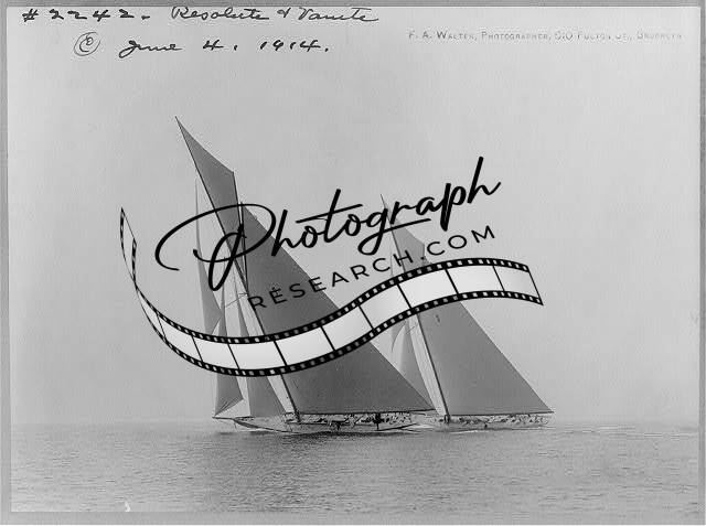 Sailing yachts on water: RESOLUTE,VANITE,ships,June 4,c1914,F.A. Walter