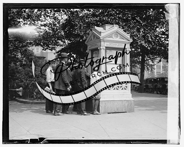 Group outside U.S. Weather bureau kiosk,United States,1923