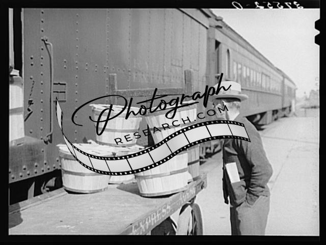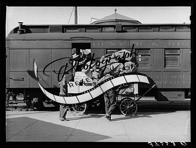 Title: Taking off the mail at the morning train. Montrose, Colorado