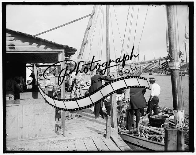 Fish docks along Miami River,fishing industry,men,piers,wharves,Florida,FL,1900