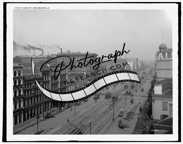 Canal Street,buildings,tracks,trains,carriages,New Orleans,Louisiana,LA,c1903