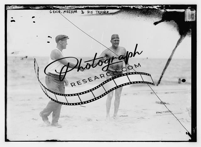 George R. Meehan,his trainer,swimming,swimmer,beach,bathing suit,Bain News