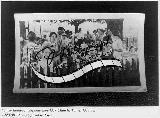 Family homecoming near Live Oak Church,Turner County,1920-30,children,table