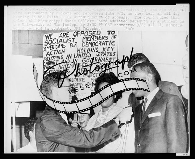 James Howard Meredith and wife respond to reporter as they leave the Fifth U.S. Circuit Court of Appeals