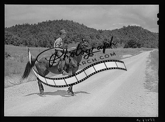 Title: Rural mailman taking packages and saddlebags of letters, which have been transferred from a wagon which cannot go up the bad side roads and creek beds, to the mountain families in this isolated area. Near Morehead, Kentucky
