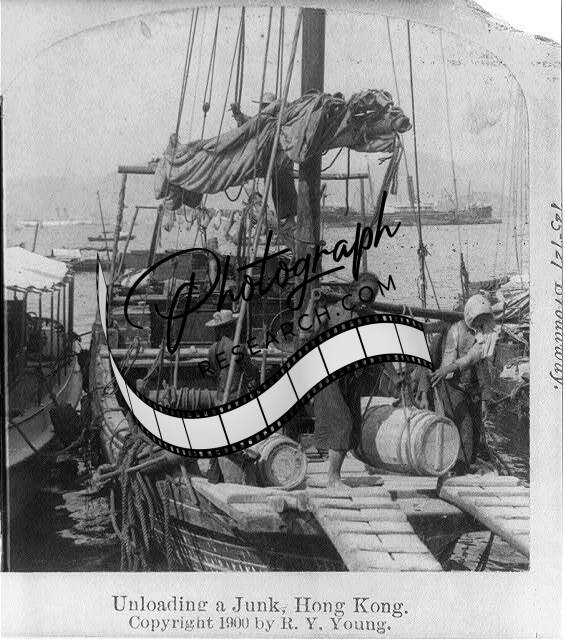 Unloading a Junk,Hong Kong,c1900,Chinese unloading Barrel from Boat
