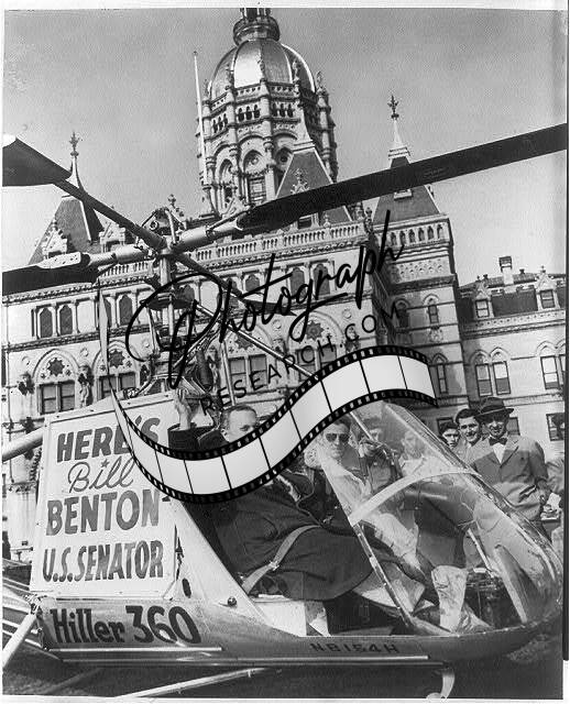 William Benton,seated in private helicopter,Senator from Connecticut,Politician