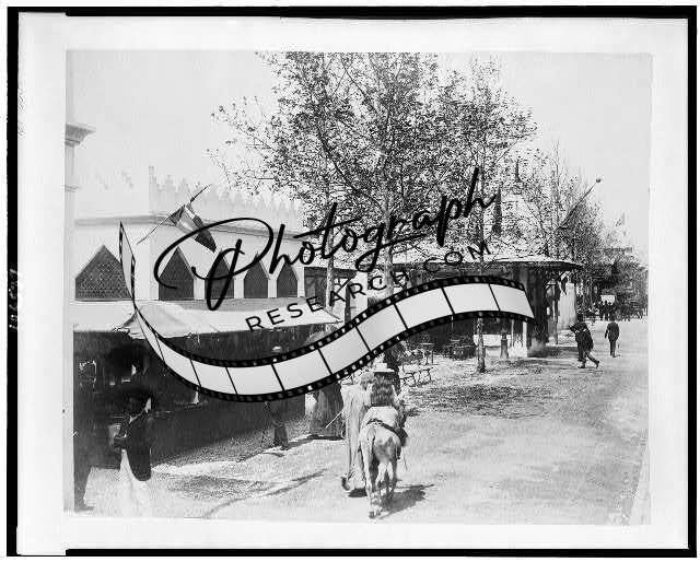 Girl riding donkey,Pavilion,Morocco,street in Cairo,Paris Exposition,France,1889 1