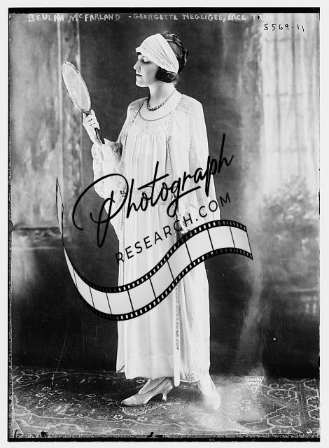 Beulah McFarland,Georgette negligee,lace trim,hand mirrors,women,dress,headband