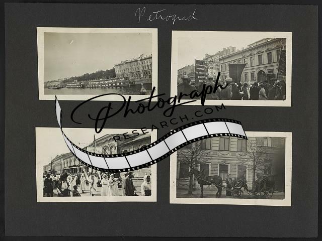 Petrograd,Boats,Neva River,people carrying banners,horse,carriage,Russians,1917