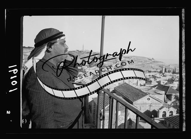 Muezzin calling hour of prayer from Saladin's Minaret,January 1939,Jerusalem