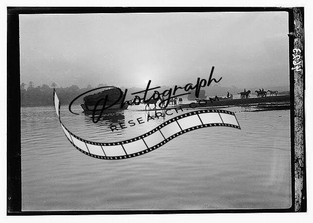 Iraq,boats,horses transporting hay on river with sun,Middle East,1932