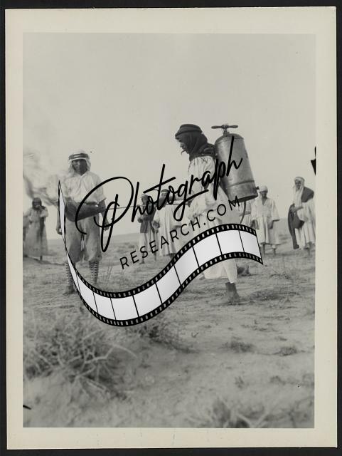 Man uses flame thrower to control locusts,Palestine,Pest Control,1915-1930