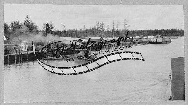 Waterfront,Nenana,Alaska,AK,Log Cabins,Piers,United States,1916,Wharves