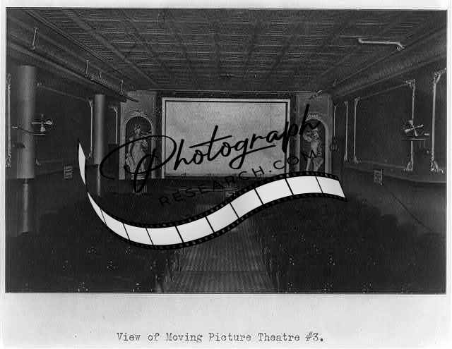 Interiors of unidentified moving picture theaters,c1909,#3,seats,isle,screen