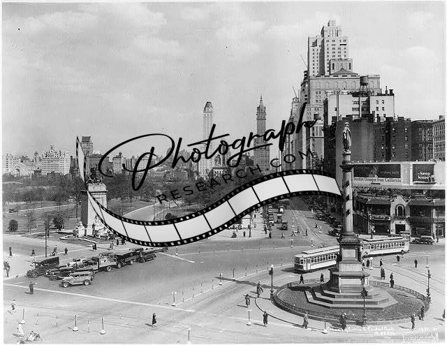 Columbus Circle,New York City,Central Park,NYC,c1931,Trolley Cars,Automobiles