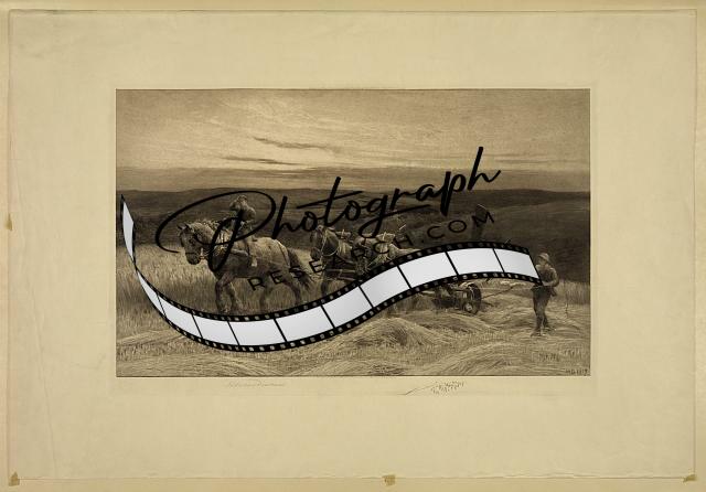 The reapers,Herbert Dicksee,horses,walking plow,men,farming,sunest
