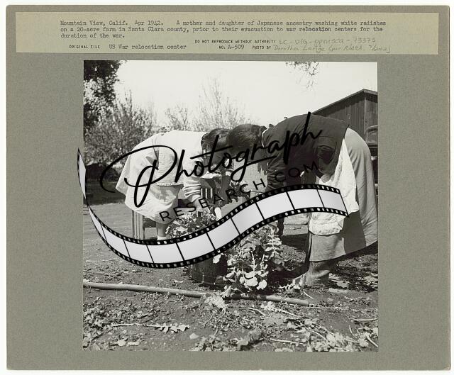 Mountain View, Calif. Apr. 1942. A mother and daughter of Japanese ancestry wash