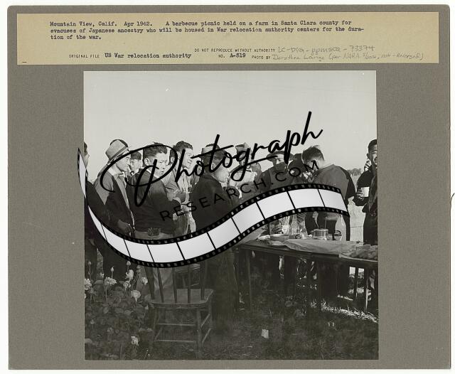 Mountain View, Calif. Apr. 1942. A barbeque picnic held on a farm in Santa Clara