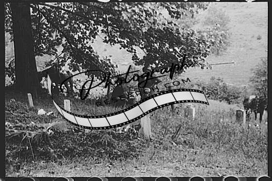 Title: Gravestones in a family cemetery where memorial meetings are held annually. In the mountains near Jackson, Kentucky. See general caption no. 1
