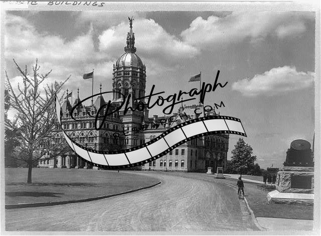 State Capitol building,domes,American flags,paths,Hartford,Connecticut,CT,c1907