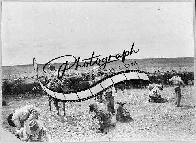 Branding on the XIT ranch in Texas,TX,Cowboys,c1904,Cows,Livestock
