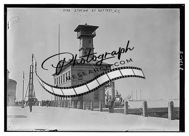 Fire station in Battery,N.Y.,New York,people,Bain News Service,exterior view