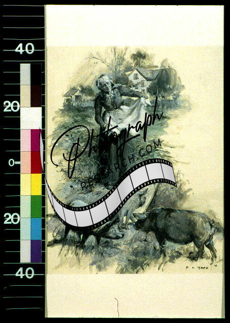 Frederick Coffay Yohn,1911,Swine,wife trying to head of the pigs,Hilton,Woman