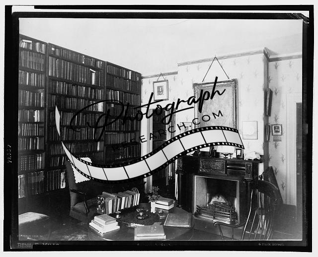 Ralph Waldo Emerson's Study,shelves of books,fireplace,desk,c1888