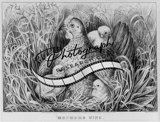 Mothers wing,Chicken,chicks,babies,c1866,Currier & Ives