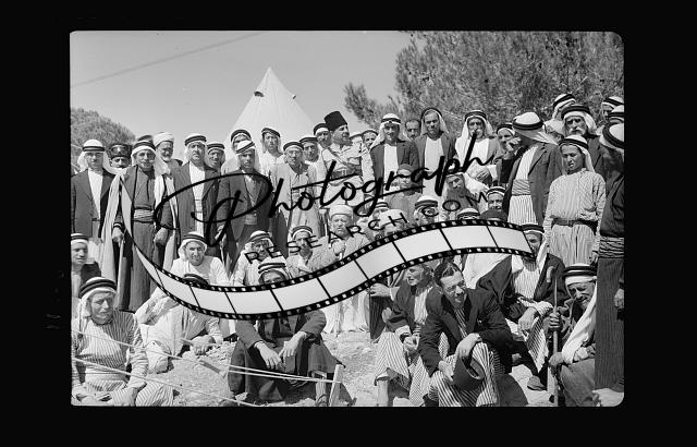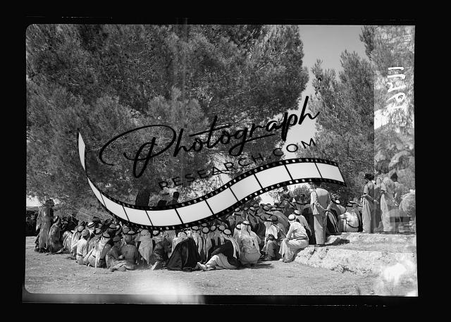 Title: Mr. E. Keith Roach & Mrs. K.R. entertain Sir Harold & Lady MacMichael & 500 falahen at Neby Saleh. H.E. (i.e., His Excellency) The High Commissioner addressing the Arab peasant gathering at Neby Saleh