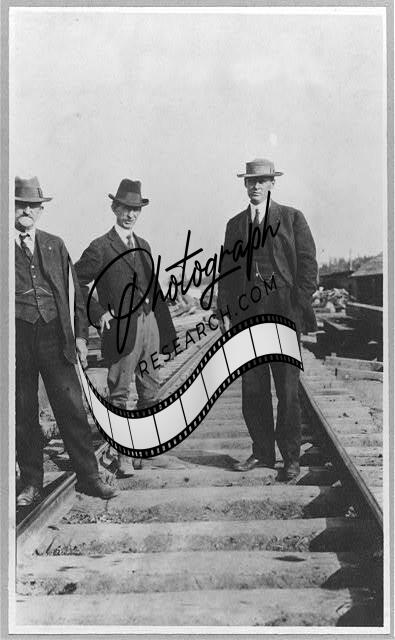 Frank G. Carpenter standing by railroad ties,RR,Anchorage,Alaska,AK,1900-1916