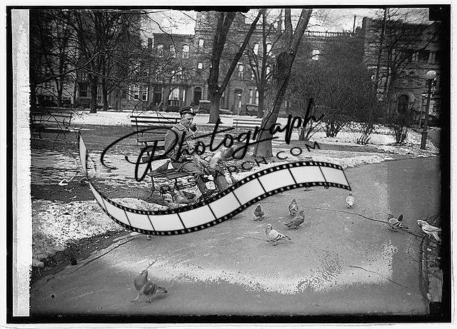 Letter carrier feeding pigeons,Postal Service,National Photo Company,1923
