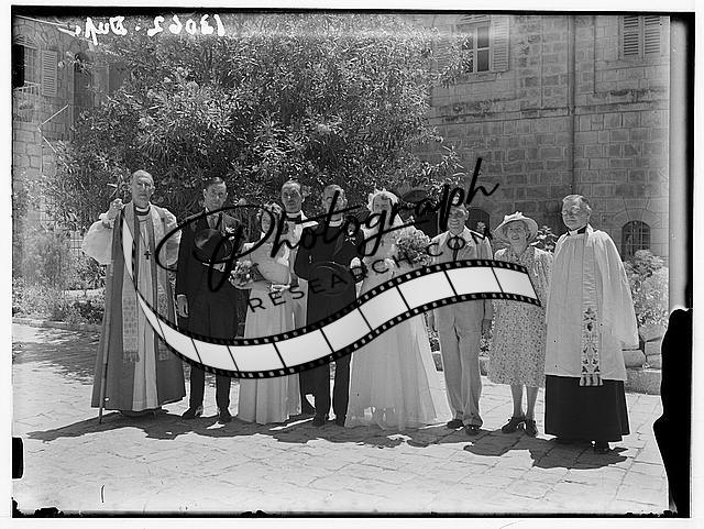 Mr. Allisson's wedding. Wedding group in courtyard,August 1944,Matson Photo