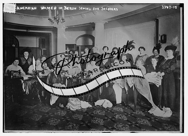 American women in Berlin,Germany sewing for soldiers,1915,Bain News Service