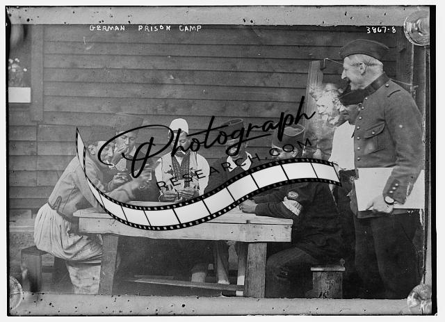 German Prison Camp,men playing cards,smoking,around table,Bain News Service