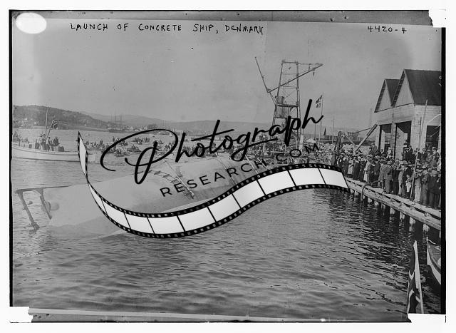 Launch of Concrete ship,Denmark,vessel,people on dock,Bain News Service
