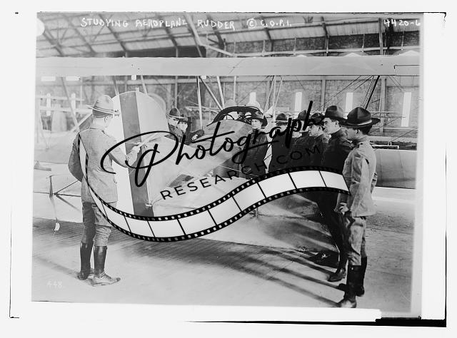 Studying plane rudder,men gathered,airplane,Bain News Service