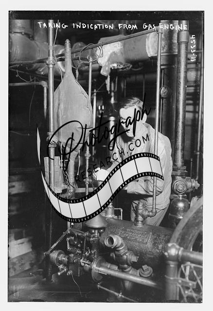 Taking indication from gas engine,man working,machinery,Bain News Service