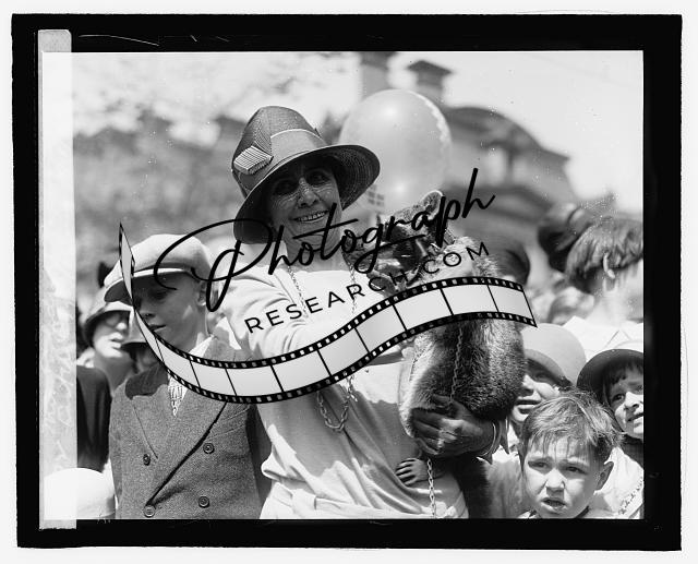 Title: Mrs. Coolidge & raccoon, Easter egg rolling, 4/18/27