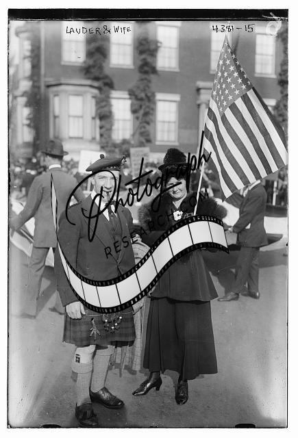Sir Henry Lauder,Harry Lauder,Scottish Entertainer & wife,Ann Vallance,US Flag