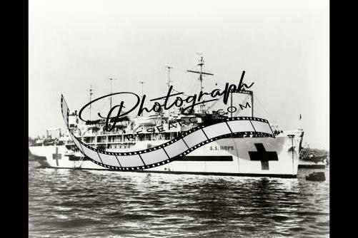 Project Hope's hospital ship 'S.S. Hope' sailing on water,1960,hospital ship