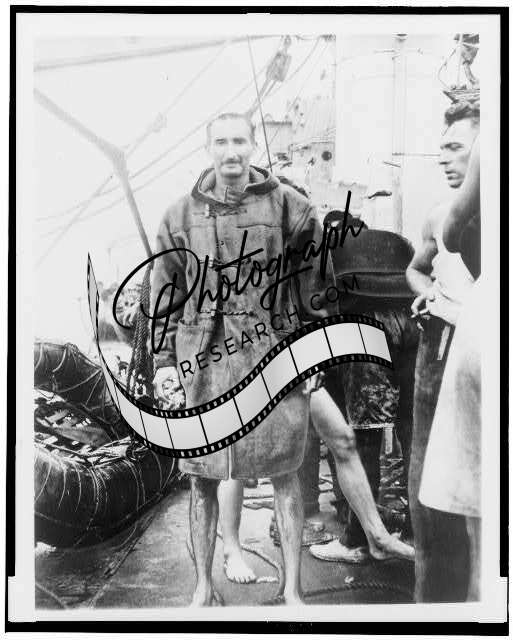 Cecil Brown,on deck of ship following rescue at sea,War Correspondent,Journalist