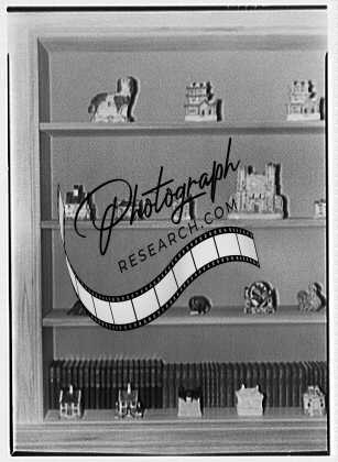 Title: Mrs. Francis A. Shaughnessy, residence on Ocean Blvd., Palm Beach, Florida. Large shelves of toy banks